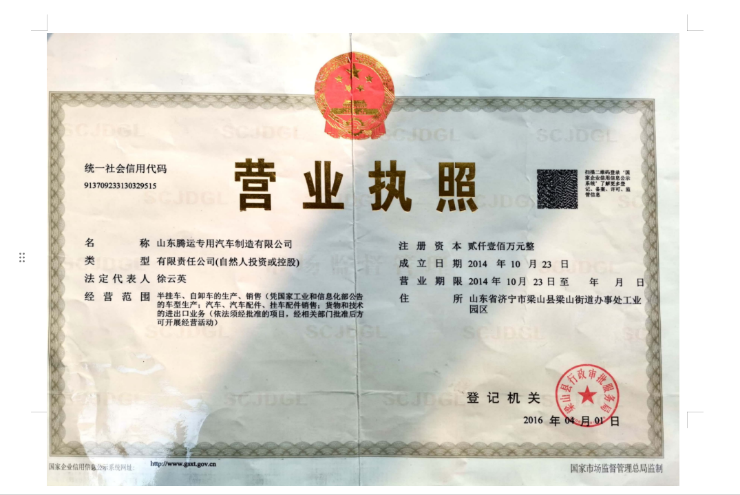 腾运企业营业执照